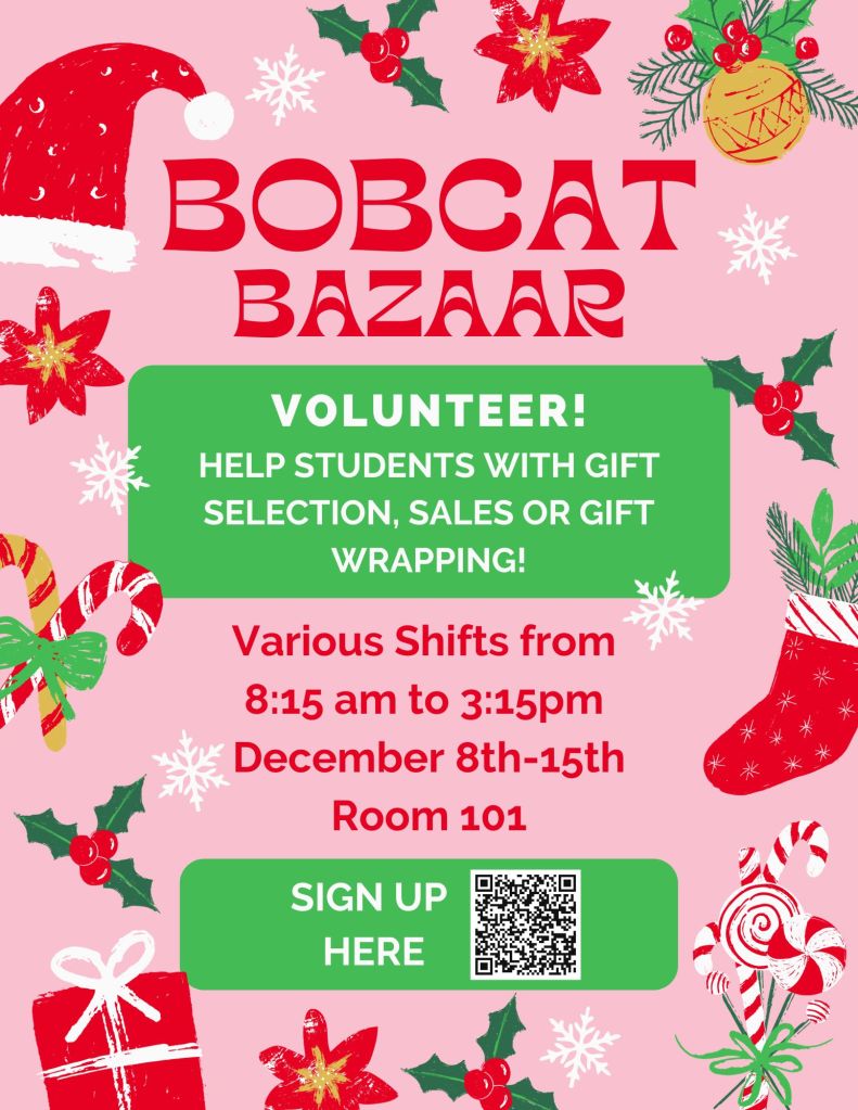 If you’d like to volunteer at Bobcat Bazaar by helping students with gift selection, sales or gift wrapping, sign up here: